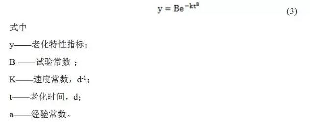 在高溫下,橡膠的老化會明顯加速。在一定的溫度范圍內,高溫加速老化與橡膠圈在使用溫度下的老化機理是相同的。因此,可以通過高溫下一系列的老化試驗,用回歸分析的方法,找出各個溫度下的變化常數(shù),再由各個溫度下的常數(shù)就可以推算出使用溫度下的橡膠圈的性能[8]。